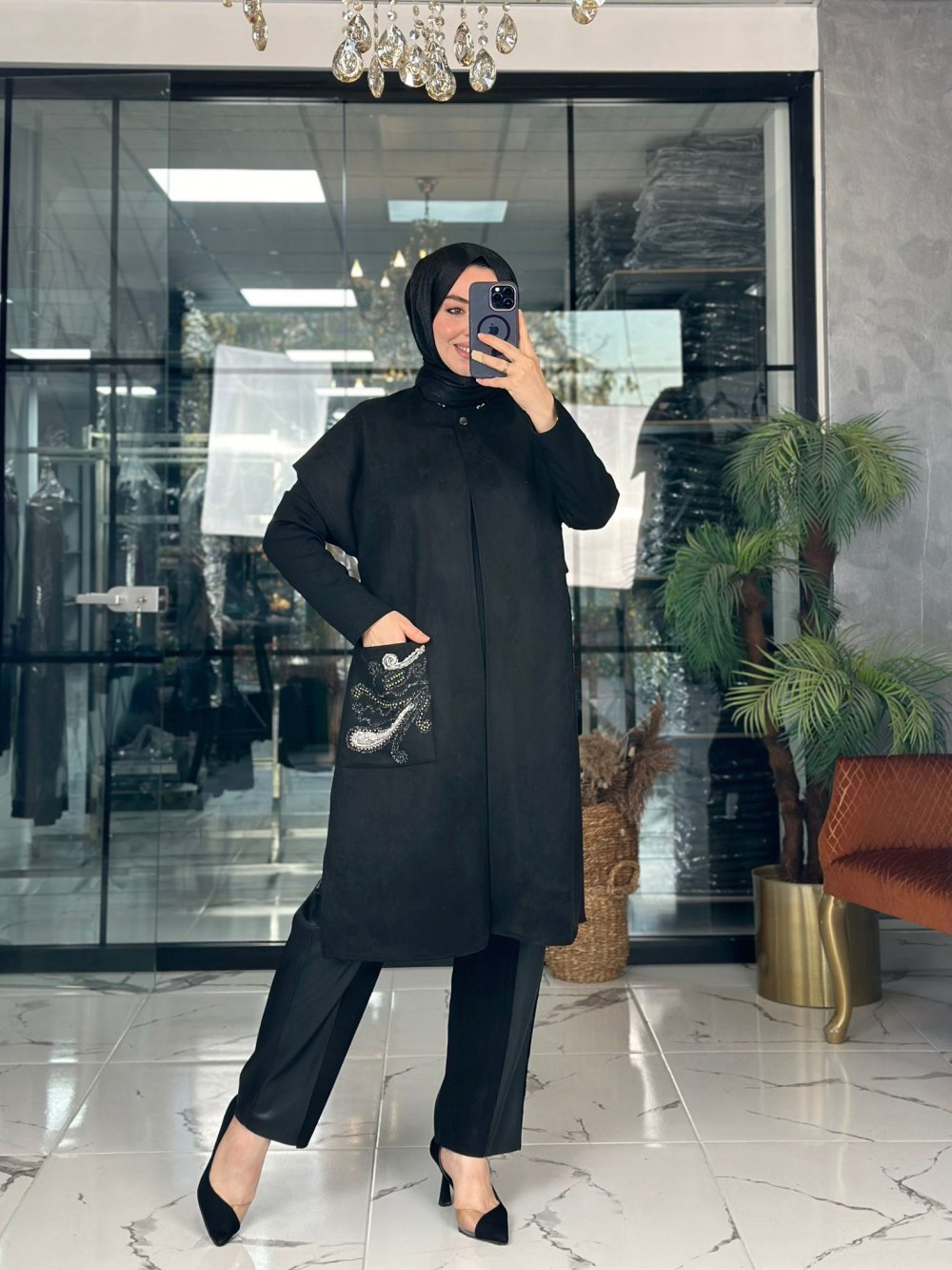 Kumaşı süettir. Yaka kısmında 1 adet düğmesi vardır. yanları yırtmaçlıdır.