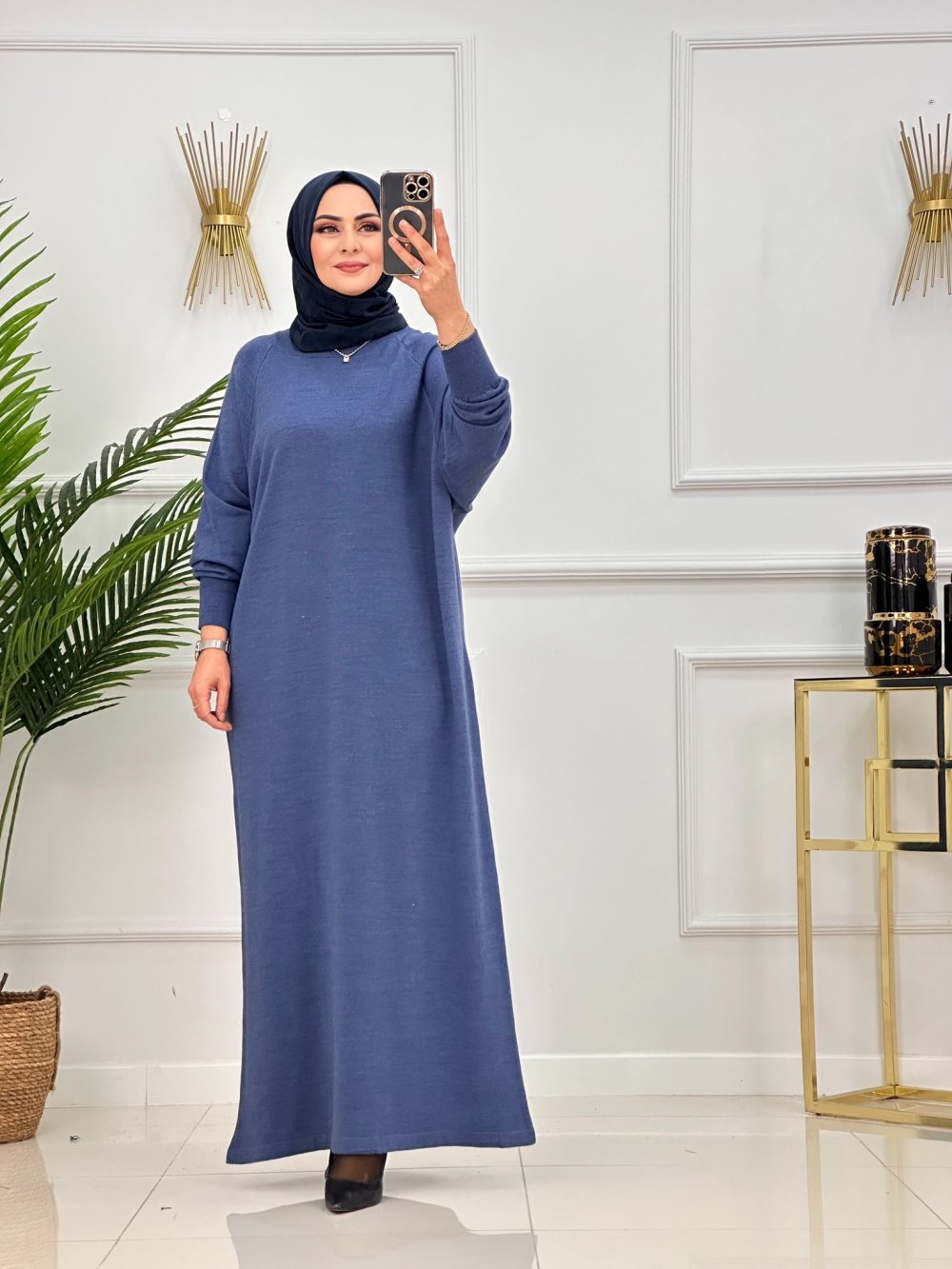 SUNA ELBİSE-İNDİGO MAVİ