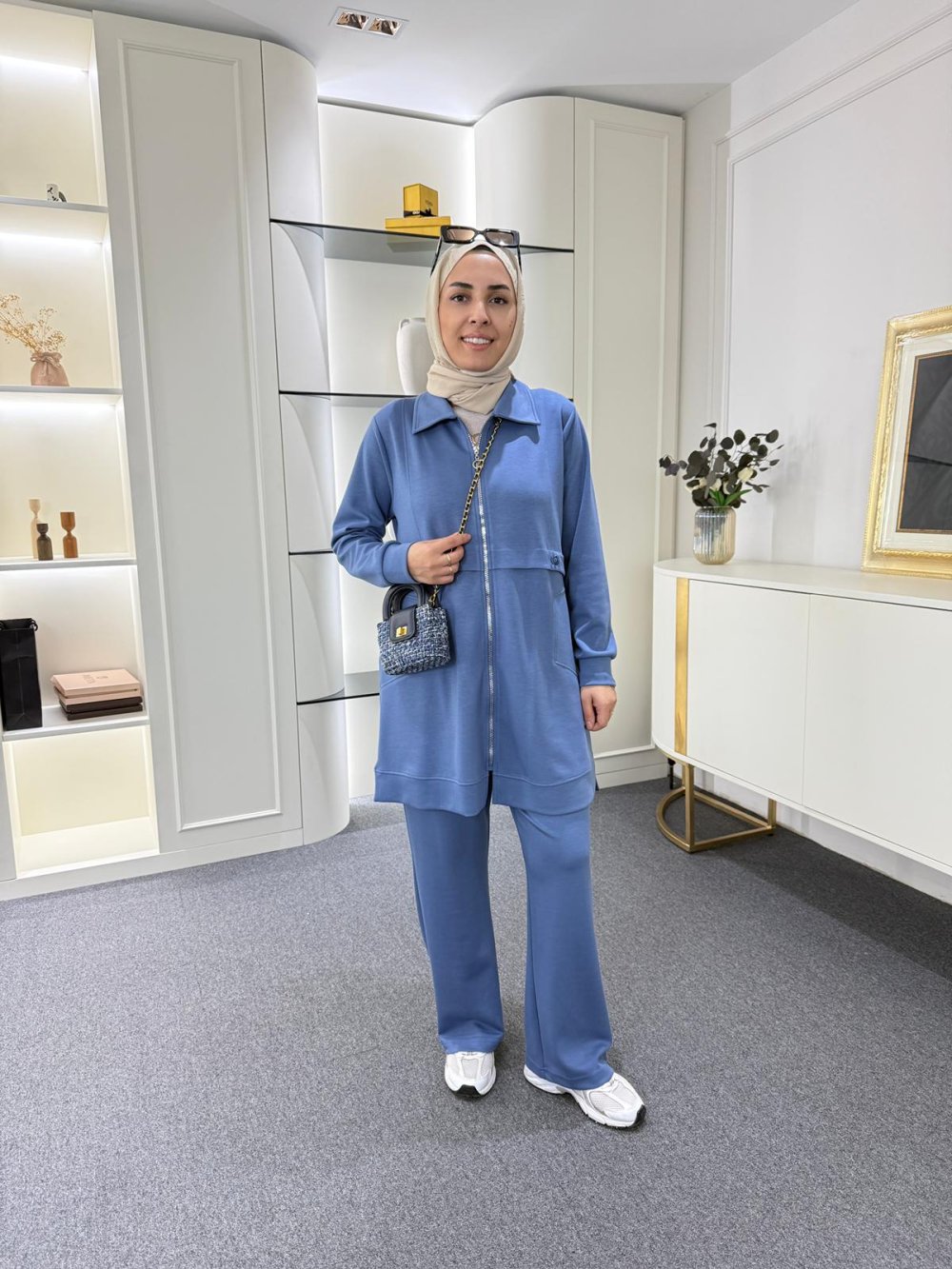 Tunik boy 85 cm’dir. Önünde metal dişli fermuarı ve yanlarda cepleri mevcuttur.