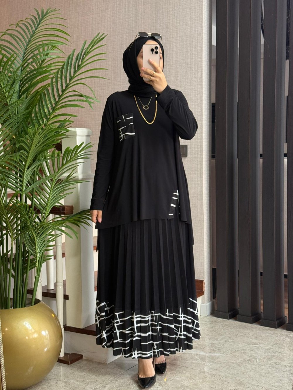 Yırtmaçlı Tilda Etekli Takım Siyah