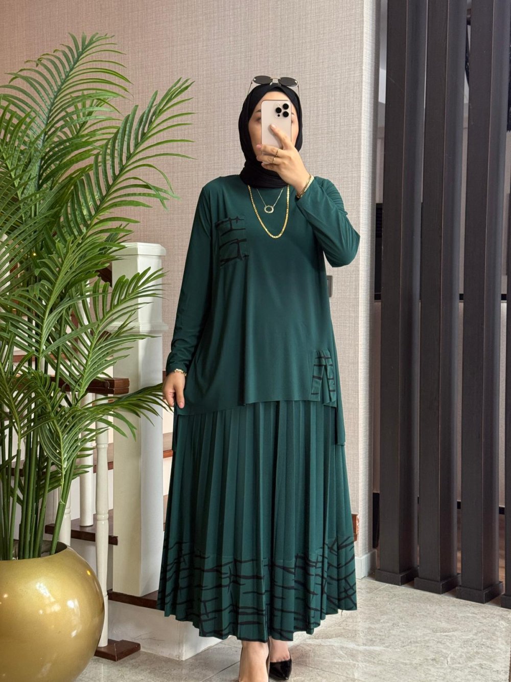 Yırtmaçlı Tilda Etekli Takım Zümrüt